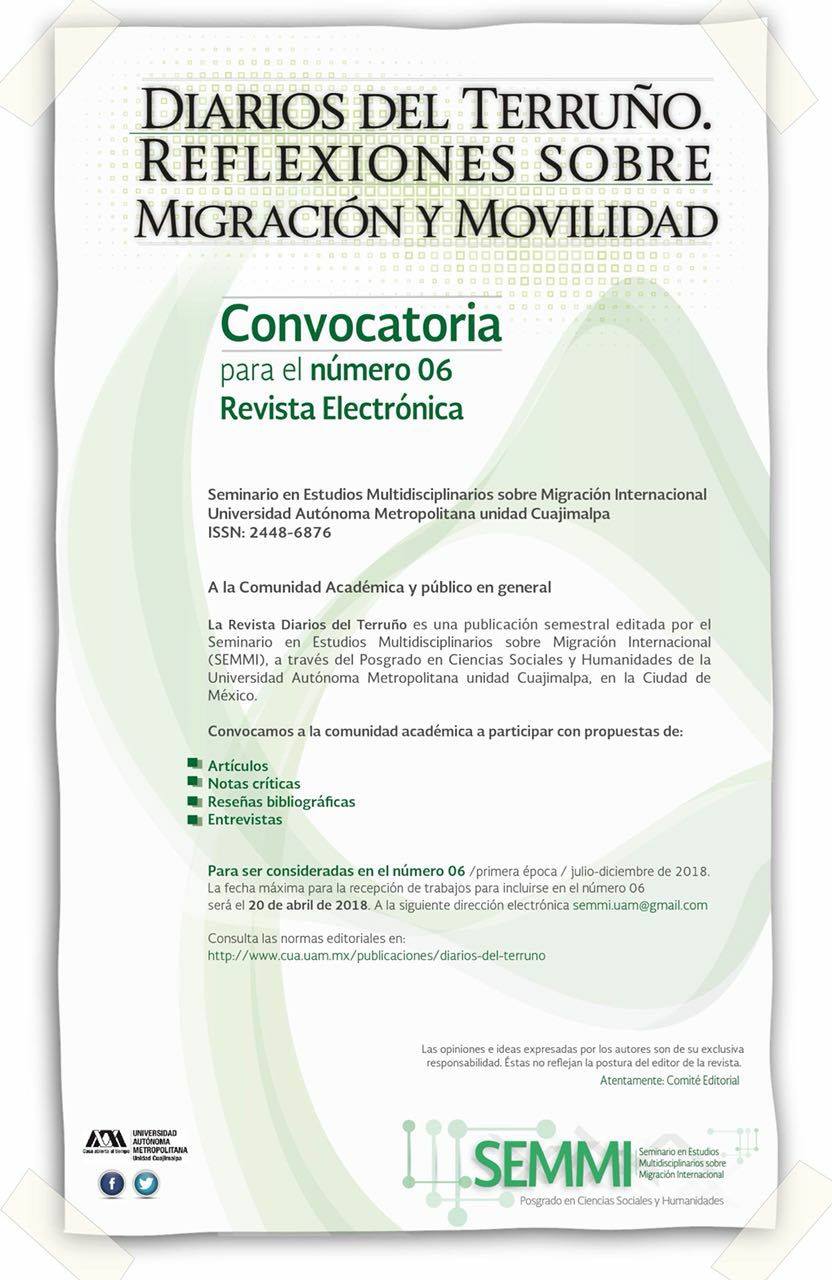 Convocatoria para el Número 06 de la revista DIARIOS DEL TERRUÑO.