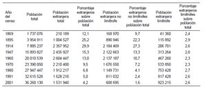 Cuadro 2. Población nacida en el extranjero según origen limítrofe o no limítrofe. Censos Nacionales 1869-2010